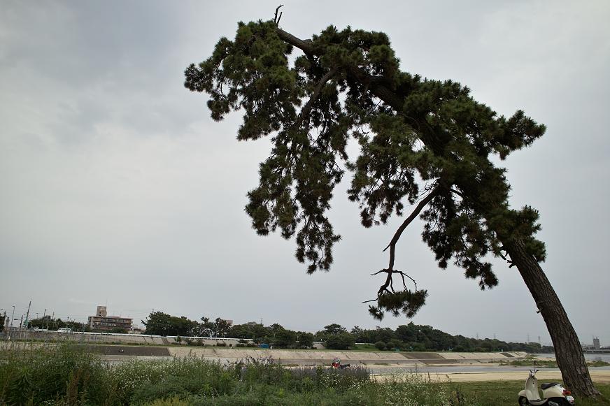 いつも気になっていた松の木。恐竜のシルエットに見えませんか?風が原因でこんな形になったみたいですが、意識的に剪定したようにも思えます。