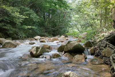 基本的にこんなカンジで沢を渡ります。この日は前日までに降った雨の影響か、途中ハイキングコースが冠水で寸断されていて、迂回させられました。鉄砲水の危険もあるので、事前の気象チェックは大事です。