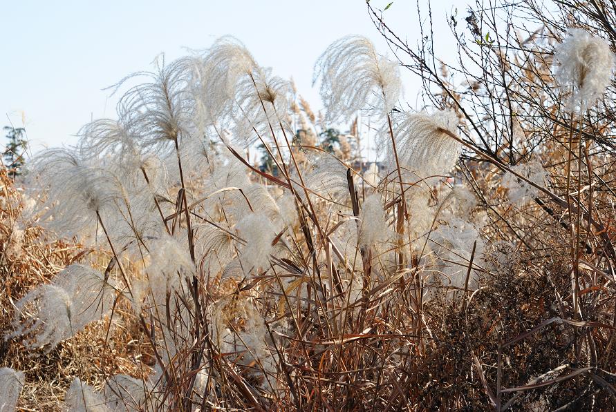 はたきのようなこいつは何?ススキかと思ったんですが、それにしては白いしフワフワしているし。